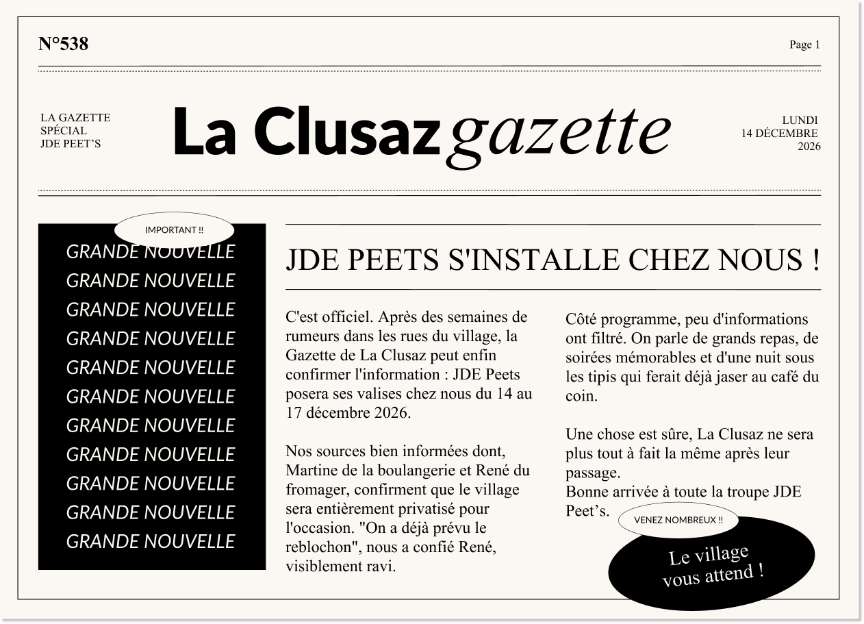Conception : scénarisation complète sur 3 jours dans le ton d'un village savoyard qui accueille sa famille.
